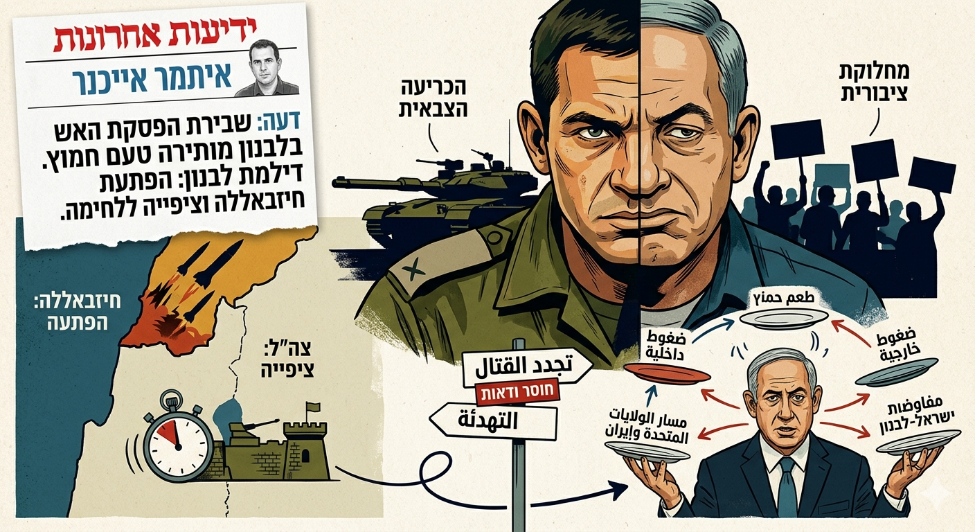 📌 ويعكس التحليل حالة ترقب إسرائيلي لمآلات التهدئة في الشمال، وسط قناعة بأن المشهد الإقليمي ما زال مفتوحًا على احتمالات التصعيد أو إعادة التفاوض.